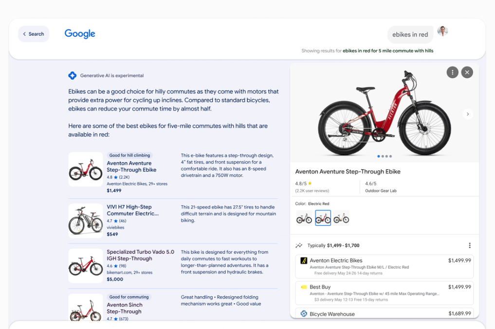 - בחירה בסקירה מבוססת AI: בדרך הזאת, המחפשים בגוגל נשאלים אם ירצו לקבל סקירה מבוססת AI לשאילתת החיפוש. לחיצה על כפתור Generate מייצרת תוכן SGE רלוונטי לשאילתת החיפוש. לפי BrightEdge, 68% משאילתות החיפוש מקפיצות את האפשרות הזאת.