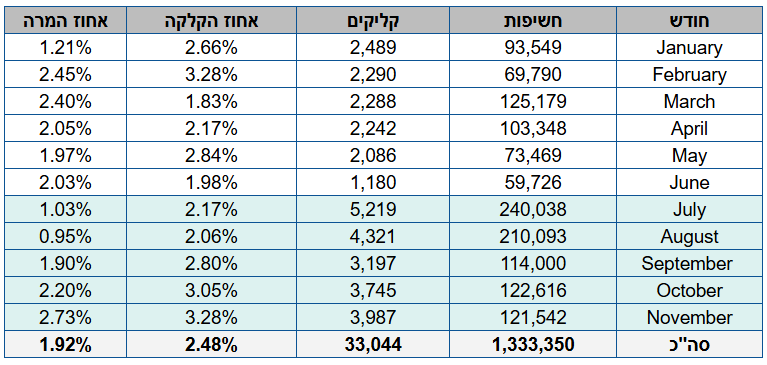 נשתף בסיפור אמיתי מעבודה עם לקוח שהתחיל בקמפיין חיפוש קלאסי לצורך גיוס מועמדים. לאחר מספר חודשים, במטרה להרחיב את החשיפה ולהתנסות ביכולות הבינה של גוגל אדס, הקמנו קמפיין Performance Max וכפי שתראו בפירוט הביצועים כאן למטה, כבר ביולי נרשמה קפיצה משמעותית בכמות החשיפות, הרי זה אחד מהיתרונות הבולטים של קמפיין מסוג זה, אבל זה לא בא לידי ביטוי באחוזי ההקלקה וההמרה שדווקא ירדו בשל איכות התנועה הירודה.